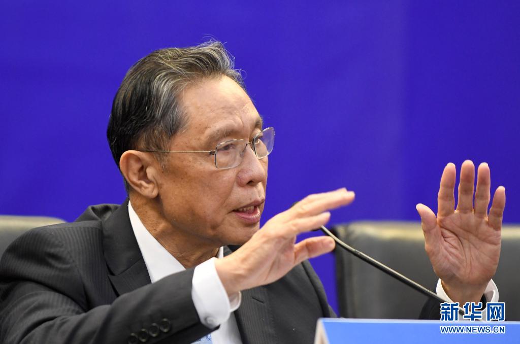 鐘南山出席廣州市疫情防控新聞通氣會(2020年3月18日攝)。新華社記者 盧漢欣 攝