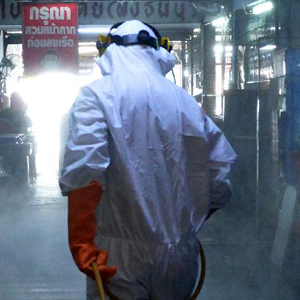6月21日,工作人員在泰國(guó)首都曼谷一處生鮮市場(chǎng)進(jìn)行消毒。