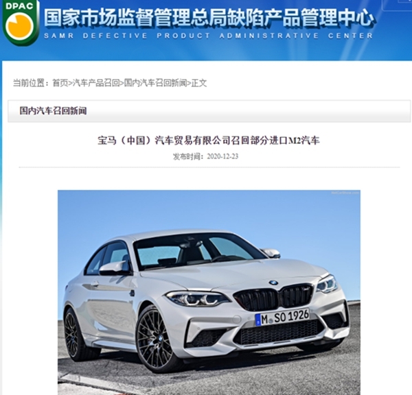 23日,宝马宣布将自即日起,召回5辆进口M2汽车。