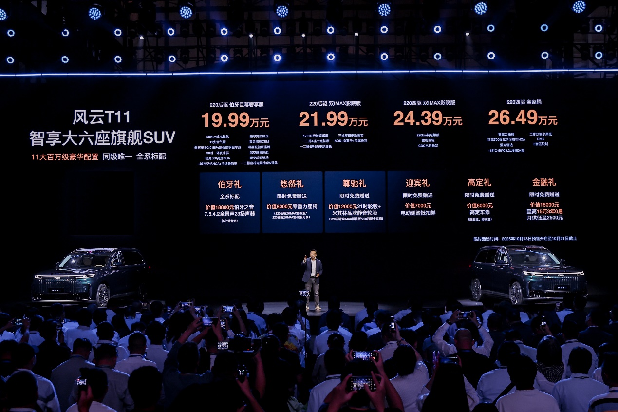 10月13日,以“兑现”为主题的风云T11家庭品鉴日暨预售发布会在安徽芜湖圆满收官。作为风云品牌焕新后的首款旗舰级SUV,风云T11定位为“智享大六座旗舰SUV”。新车以“顶格对标”为理念,凭借“超大更好”四大核心价值、三大沉浸式场景与11大全系标配,兑现用户对品质生活的全维期待。