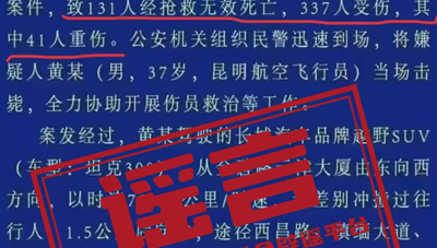 近日,有網(wǎng)民散布虛假的“警情通報”,造謠傳播云南昆明交通事故“致131人死亡,337人受傷”等不實信息,公安機關(guān)核查后,依法對造謠者進(jìn)行了刑事拘留?!八{(lán)底白字”的“警情通報”是公安機關(guān)權(quán)威發(fā)布的重要渠道。不法分子竟敢冒用官方標(biāo)識,將“2死9傷”惡意篡改成“131人死亡、337人受傷”,并編造聳人聽聞的細(xì)節(jié),真是膽大包天!