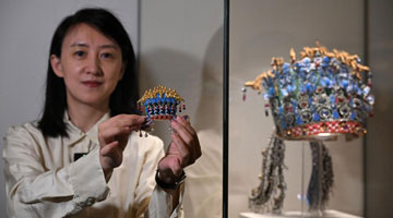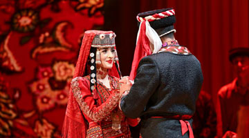 3月25日,在河北省唐山市丰润区泉河头镇团山子小学,评剧演员帮助学生整理头饰。