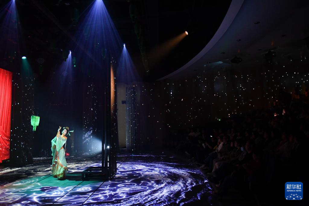 4月12日,演员在舞台剧《寻长沙》中演奏青铜铙。