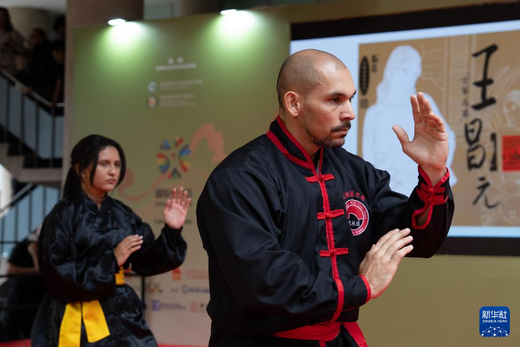 4月15日,在巴西里约热内卢天主教大学举办的“国际中文日”庆祝活动上,武术爱好者进行中国传统武术展示。