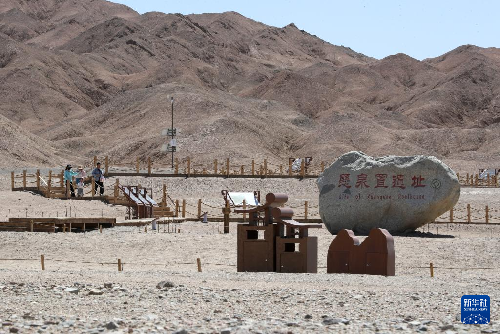 5月9日,游客在敦煌市悬泉置遗址参观游览。