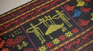 5月16日,老挝民众在首都万象举行的“茶和天下·雅集”暨广西文化旅游推介会上参加壮锦非遗体验活动。
