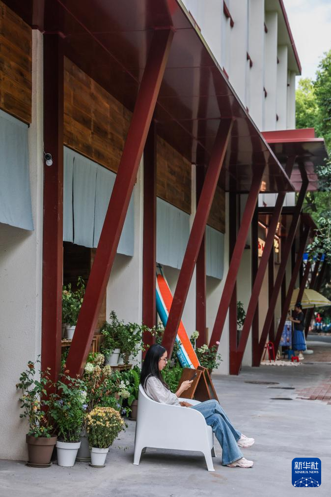 今年以来,浙江省嘉兴市南湖区创新盘活老旧工业遗存,将一处国营老厂区改造为融合创意、美学的城市新地标——嘉创湾花园式产业园区。该园区占地6000平方米,保留了原来的水塔、钢架、老厂房等工业元素,吸引了多家创新型企业及餐饮、文创商店聚集,将工业记忆转化为创新动能,打造新消费场景。