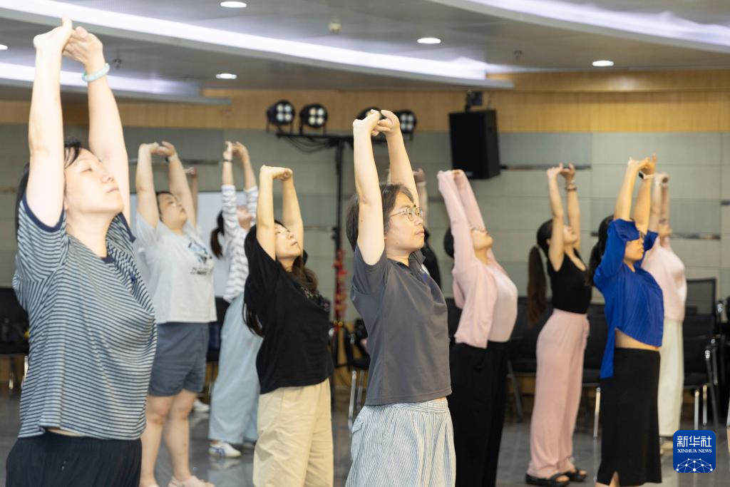9月1日,在上海市群众艺术馆,肩颈康养课程的学员在市民艺术夜校上课。