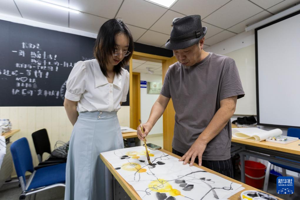 9月1日,在上海市群众艺术馆,国画课程的学员在市民艺术夜校上课。