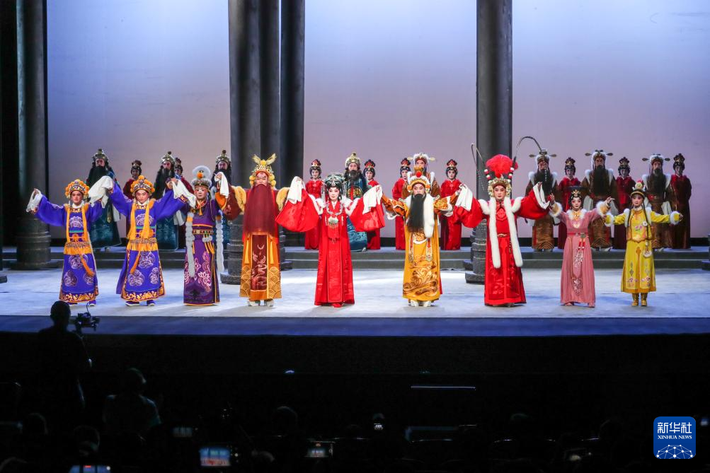 9月5日晚,演员在兰州音乐厅表演京剧《凉州辞》。