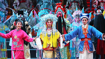 9月20日晚,在敦煌大剧院,演员在新版《丝路花雨》演出结束后返场谢幕。