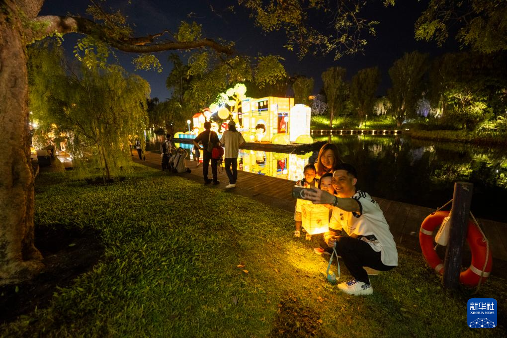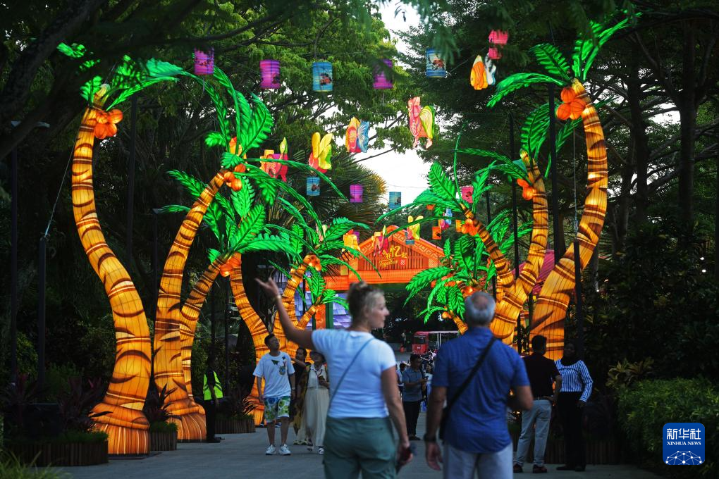 当日,新加坡滨海湾花园中秋节灯饰正式亮起。