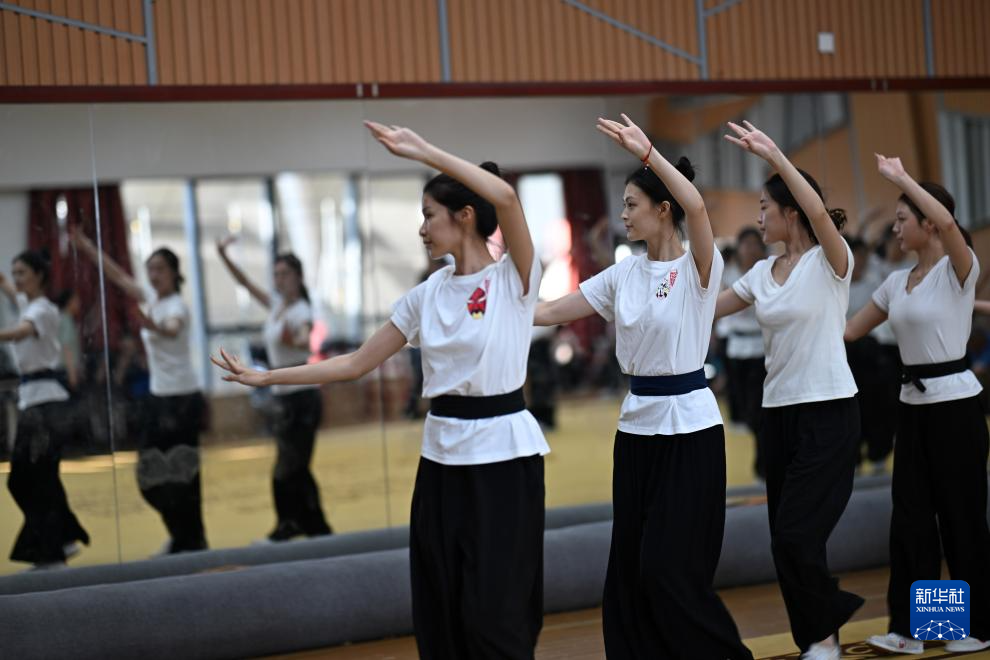 10月12日,浙江婺剧艺术研究院的演员在排练厅内练习基本功。