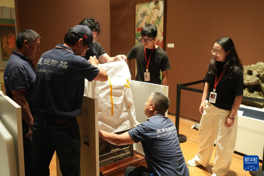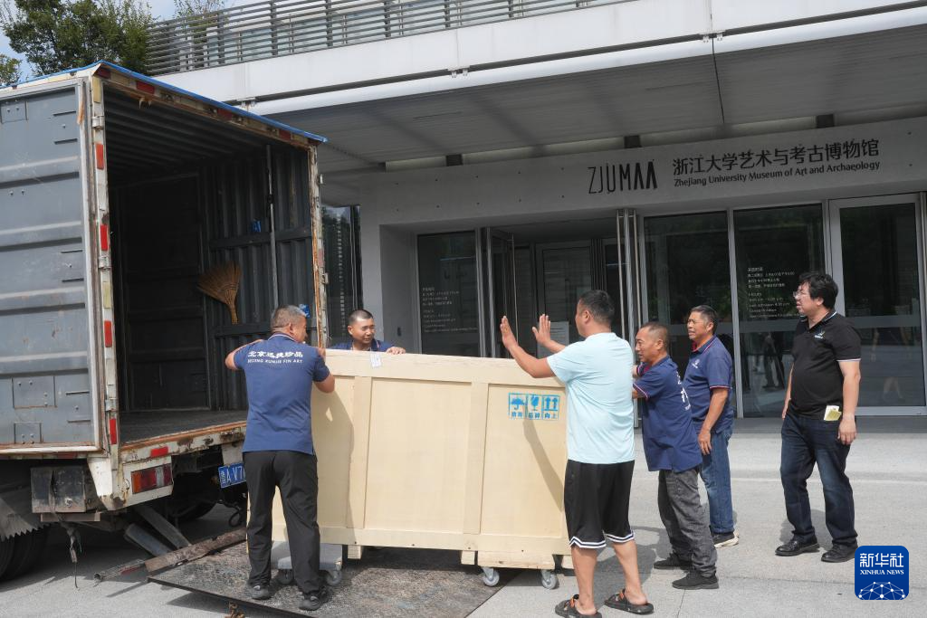 10月14日,策展团队在进行展品的打包运输。