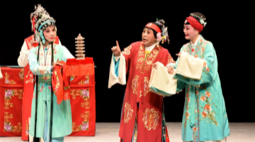 10月21日,在奥地利首都维也纳,演员在表演锡剧《珍珠塔》。