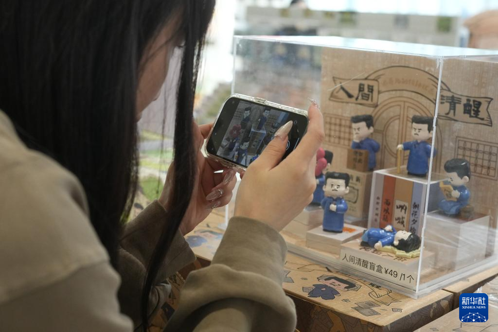 10月23日,游客在鲁迅故里拍摄文创产品。