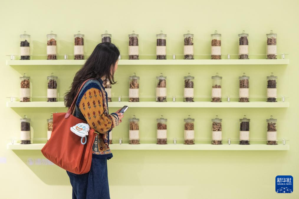 10月28日,参观者在2025年中华传统晒书活动暨长江文化典籍阅读季上观看展出的中药标本。
