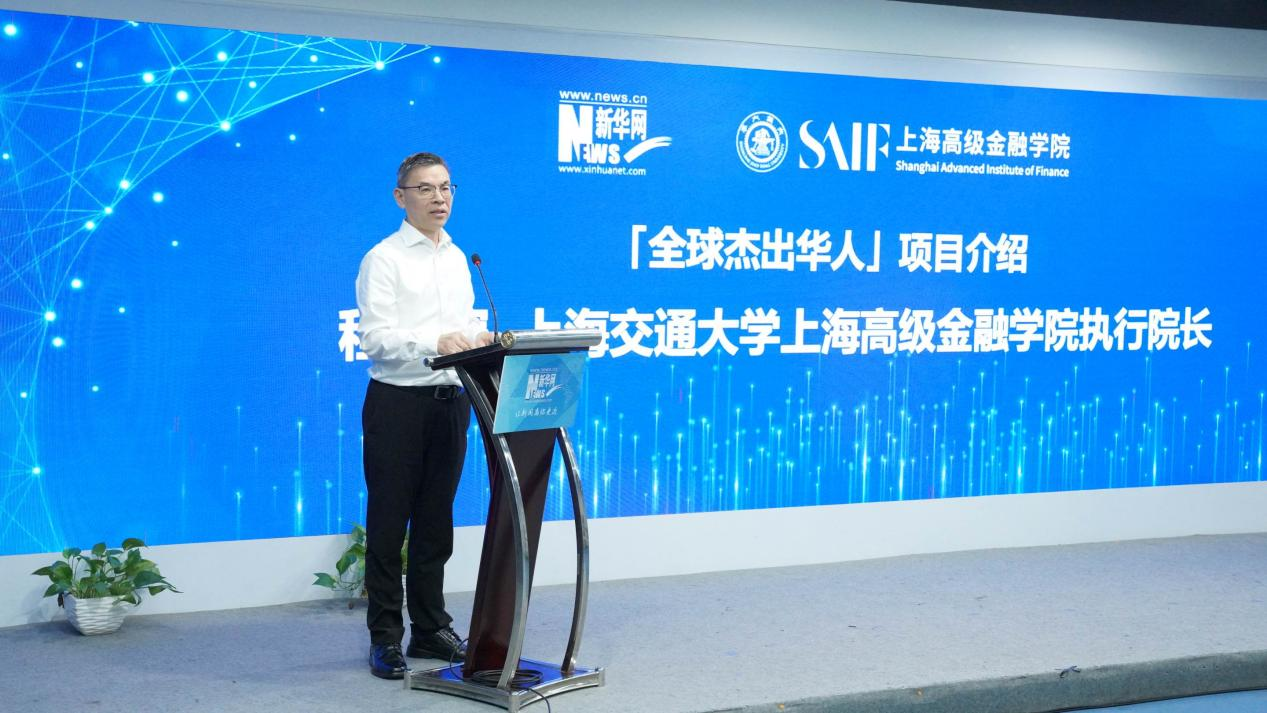 上海交通大学上海高级金融学院执行院长程仕军介绍“全球杰出华人”项目。新华网 王小骥摄