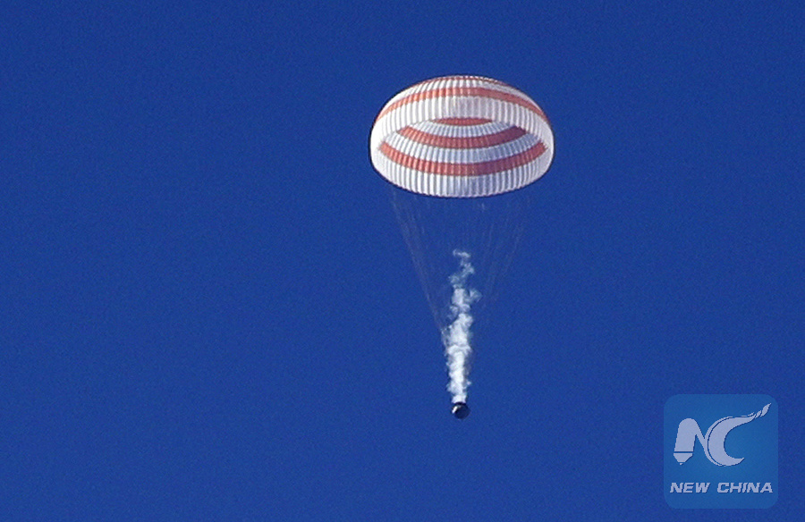 MOSCOW, June 3 (Xinhua) -- The Russian Soyuz MS-07 spacecraft with three members of the International Space Station (ISS) crew successfully landed in Kazakhstan's steppe on Sunday, the Russian state space corporation Roscosmos said.