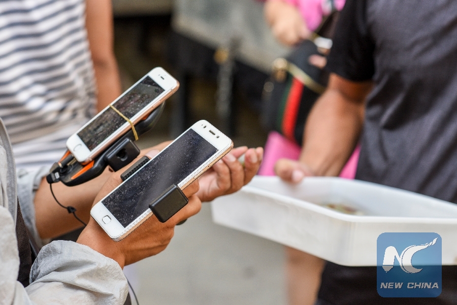 The two mobile phones that Pu uses to live-stream events (Xinhua/Hu Huhu)