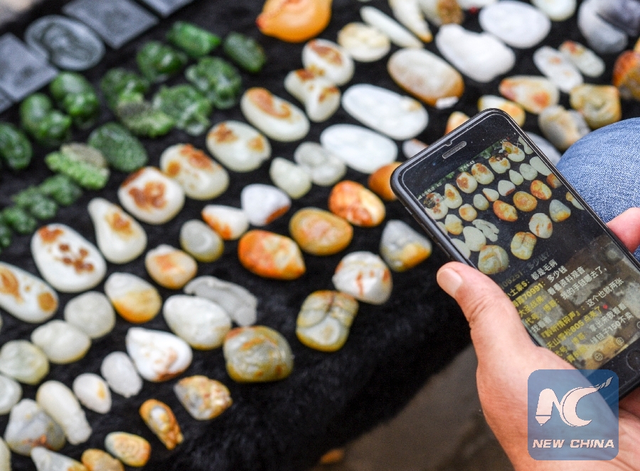 By live-streaming the purchasing process to help retailers sell jade online, Pu has become a minor celebrity at a jade bazaar in Hetian, northwest China's Xinjiang.
