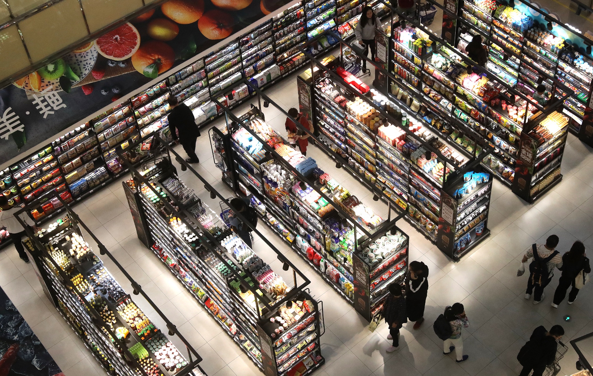 Consumers select food at a supermarket in Shanghai, east China, April 15, 2019. (Xinhua/Chen Fei)