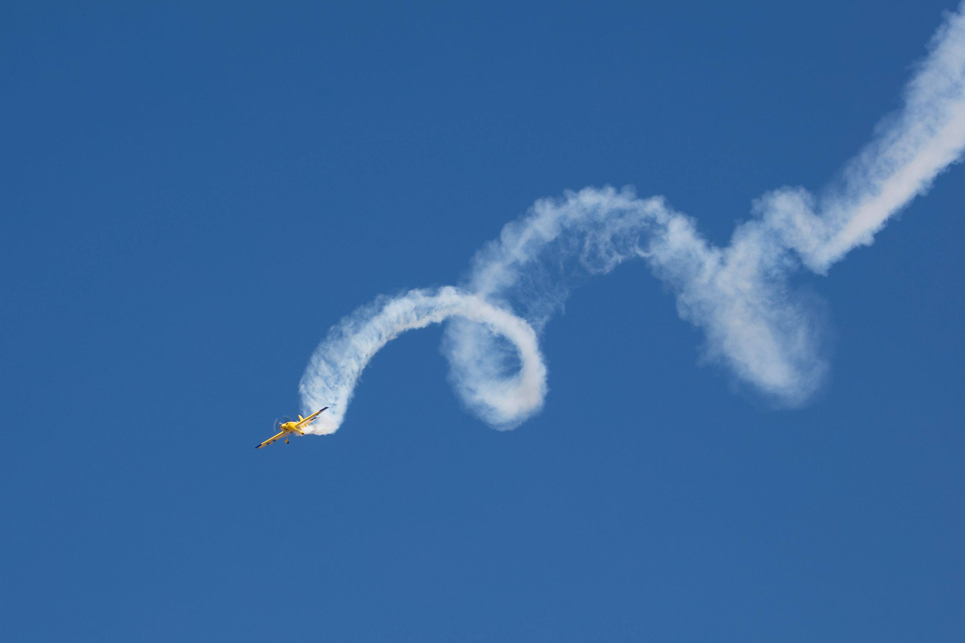 An airplane performs during the Fort Worth Alliance Air Show in Fort Worth, Texas, the United States, Oct. 20, 2019. (Photo by Tian Dan/Xinhua)