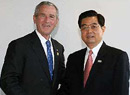 Hu, Bush meet on bilateral ties, cooperation
