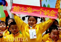 Chinese kids support China's bid for World Expo Shanghai 2010