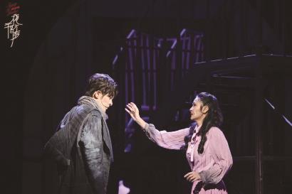 围绕“约定和团圆”,音乐剧《夜半歌声》建构“重建、重逢、重生”的剧情,通过毁灭/灾祸、离乱/苦难、牺牲/救赎,呈现命运的苦和勇,人生的光与盐。作为一部几乎没有台词的音乐剧作品,《夜半歌声》由大量唱段主导,音乐贯穿全剧,推进着故事的发展。词与曲,在这部作品中无疑是最重要的板块。在作曲李京键看来,《夜半歌声》首先必须要写出有戏剧结构的音乐,使之成为真正的“剧”,而不是歌曲接歌曲的联唱;其次,考虑到音乐剧自身的属性与上海这座城市的特质,音乐整体结构与和声语言的设计要先于唱段写作,即先有和声,才有旋律。