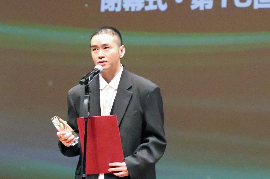 10月28日,在日本东京,导演甘剑宇上台领奖。甘剑宇执导的《误杀3》获评“金鹤奖”最佳作品奖。新华社记者 李子越 摄