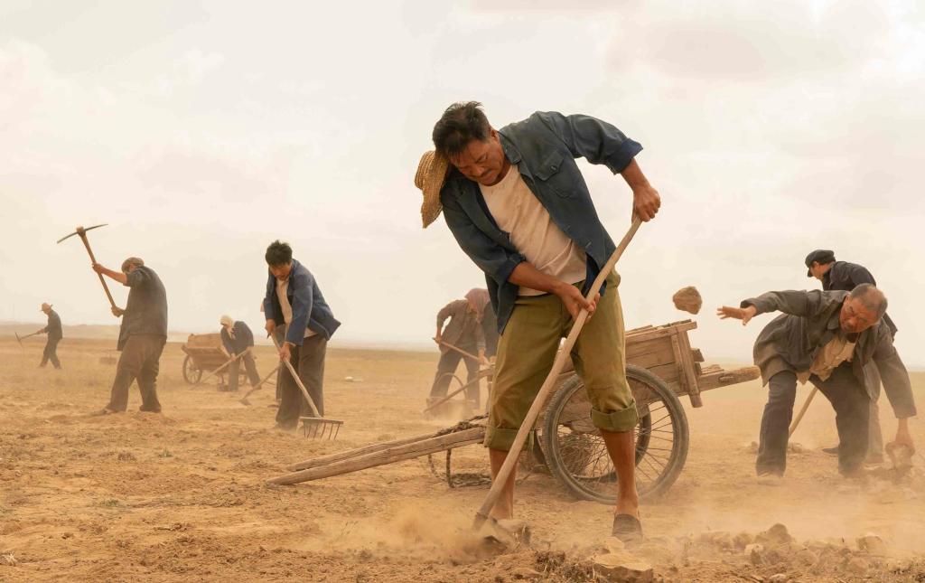 拍摄电视剧《山海情》时,摄制组为还原黄土高坡的真实质感,在黄河边一个废弃村落铺设了厚厚的一层细土,整个拍摄过程黄土飞扬。