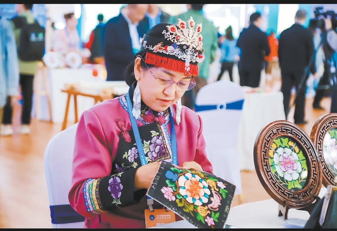 鲜艳的花瓣层层展开,四周以佛手、蝴蝶、石榴等图案做点缀,一朵朵来自土族的“生命之花”跨越千里,来京赴约。在近期举办的2025年服贸会上,青海省级非遗“河湟刺绣”在首钢园RE睿·三高炉数字博物馆亮相,一幅幅刺绣作品以浓烈如焰的色彩和特色鲜明的纹样,诉说民族故事。