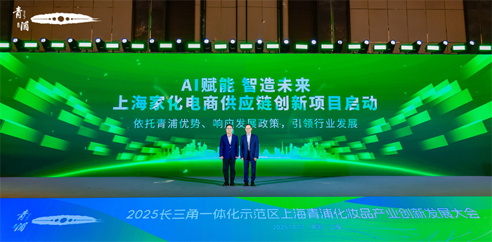 创新成果揭幕仪式后,上海市青浦区委常委、副区长李峰,上海家化联合股份有限公司党委书记、董事长兼首席执行官林小海共同启动“AI赋能·智造未来”上海家化电商供应链创新项目。在青浦区的有力支持下,上海家化紧抓“AI+制造”政策机遇,依托青浦工厂智能化制造与强大产能,探索电商供应链创新。面对线上消费迅猛发展,企业突破传统“工厂—总仓—分仓—平台仓”的长链条模式,探索“电商工厂直发”新路径,实现生产与销售的高效协同。同步建设公司首个“电商包装创新应用中心”,融合绿色包装、智能设计与AI技术,动态响应市场需求,灵活调整生产,大幅缩短流通链路,提升效率、节约资源。青浦正以开放生态与专业服务,助力企业创新落地,推动中国化妆品产业高质量发展。