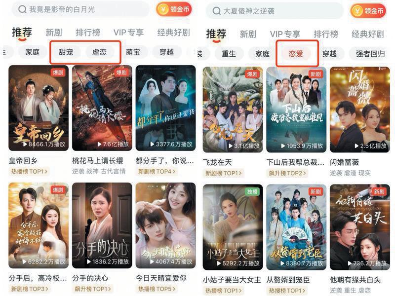 记者观看多部“霸总”微短剧发现,不少以男女主亲密戏开场,或给“恶毒男配”安排强迫女主亲热的戏码。于今无量CEO(首席执行官)李峻丞对记者表示,现在微短剧大多依靠情绪铺垫和新颖的人物设定,并设置悬念反差来吸引观众,行业早期“上来就一巴掌”的形式变少了,“例如,相亲题材中的闪婚、相错亲等这类主题。”
