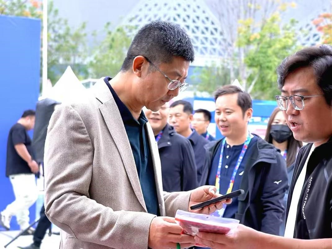 10月16日,2025度小满西安马拉松博览会、度小满西安体育消费嘉年华正式启幕。度小满CEO朱光化身“逛展市民”,来到由度小满邀请的“小满助力计划”公益项目用户中宁原浆枸杞摊位前,品尝了鲜榨枸杞原浆,当场就“扫码下单”购买;转到陕西本地茶叶展台时,他拿起一罐秦丝茶叶仔细端详:“这是我家乡的茶叶,喝着特别顺口。”看到西安本地文创产品时,也忍不住买了一份带回家。