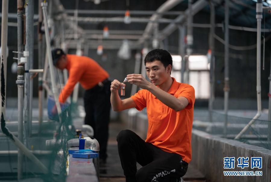 3月17日,河北省黃驊市一家養(yǎng)殖專業(yè)合作社的工人在檢驗(yàn)水質(zhì)。近年來,河北省黃驊市根據(jù)自身產(chǎn)業(yè)基礎(chǔ),瞄準(zhǔn)市場調(diào)結(jié)構(gòu),走集約化發(fā)展、產(chǎn)業(yè)化經(jīng)營的現(xiàn)代漁業(yè)發(fā)展新路,推動以水產(chǎn)育苗業(yè)、養(yǎng)殖業(yè)等為代表的現(xiàn)代漁業(yè)發(fā)展,引領(lǐng)漁民轉(zhuǎn)產(chǎn)轉(zhuǎn)業(yè)和產(chǎn)業(yè)轉(zhuǎn)型升級。目前,黃驊漁區(qū)海水育苗養(yǎng)殖企業(yè)108家,直接提供就業(yè)崗位近5000個,年產(chǎn)值達(dá)8億元,現(xiàn)代漁業(yè)成為漁民增收致富的“新引擎”。