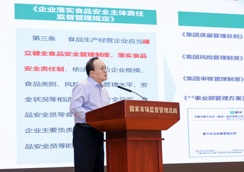 把食品安全责任压实到“最小工作单元”,企业责任是关键一环。论坛上,来自蒙牛乳业、伊利乳业、光明乳业、飞鹤乳业、雀巢(中国)、百胜中国、海底捞餐饮、元气森林、美团、京东、抖音、快手、拼多多等50多家食品生产企业及平台企业的代表,也就企业主体责任落实各抒己见。蒙牛集团质量管理评审总监石永强作为企业代表,在分享中表示,蒙牛作为中国乳业代表性企业,将食品安全视为重中之重,近年来,通过“一套管理体系,三级管理架构,五级检索机制”,持续推动主体责任落实。下一步将在持续完善食品安全责任体系、创新工作方法、强化工作部署等方面继续努力。