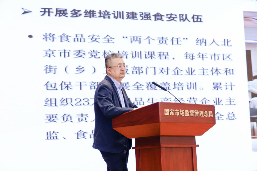 在主题分享环节,黑龙江省佳木斯市副市长于大志,新疆维吾尔自治区市场监管局副局长徐艳玲,北京市市场监管局食品安全总监、食品药品安全协调处处长张海京,山东省高密市委常委、副市长马明分别介绍了地方落实属地责任与企业主体责任的典型做法和成功经验,体现出各地政府和相关部门在深入压实“两个责任”工作中的创新探索与务实成效,为后续工作开展提供了可复制、可推广的宝贵经验。