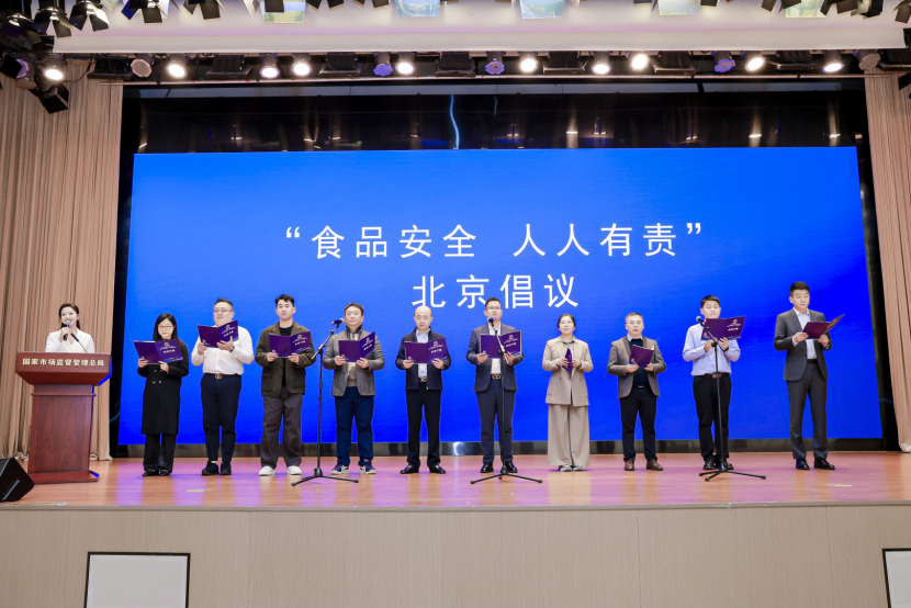 当天,在论坛现场,包括原始黄金乳业、伊犁那拉乳业、华莱士、霸王茶姬、完美(中国)等在内的企业及社会组织代表共同发起《“食品安全 人人有责”北京倡议》(以下简称《倡议》)。《倡议》呼吁,做落实党的食品安全大政方针的坚决执行者、恪守食品安全生产经营的遵纪守法者、压紧食品全链条安全的责任承担者、推动食品安全良好市场营商环境的坚定参与者、确保广大人民群众“舌尖上安全”的共同维护者,诚信尚俭,共享食安,为满足人民群众日益增长的美好生活需要贡献力量。