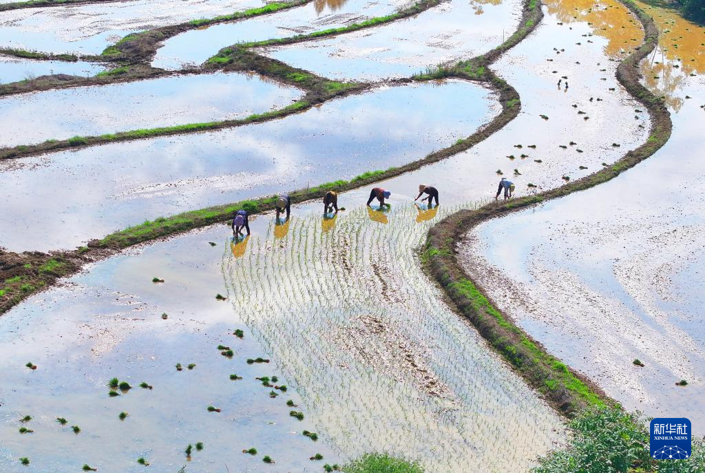 湖南省怀化市通道侗族自治县双江镇马龙村农民在田间耕作。新华社发(粟勇主摄)
