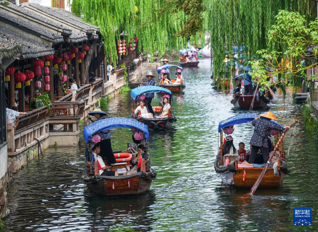 10月5日,游客在江苏省昆山市周庄古镇游览。