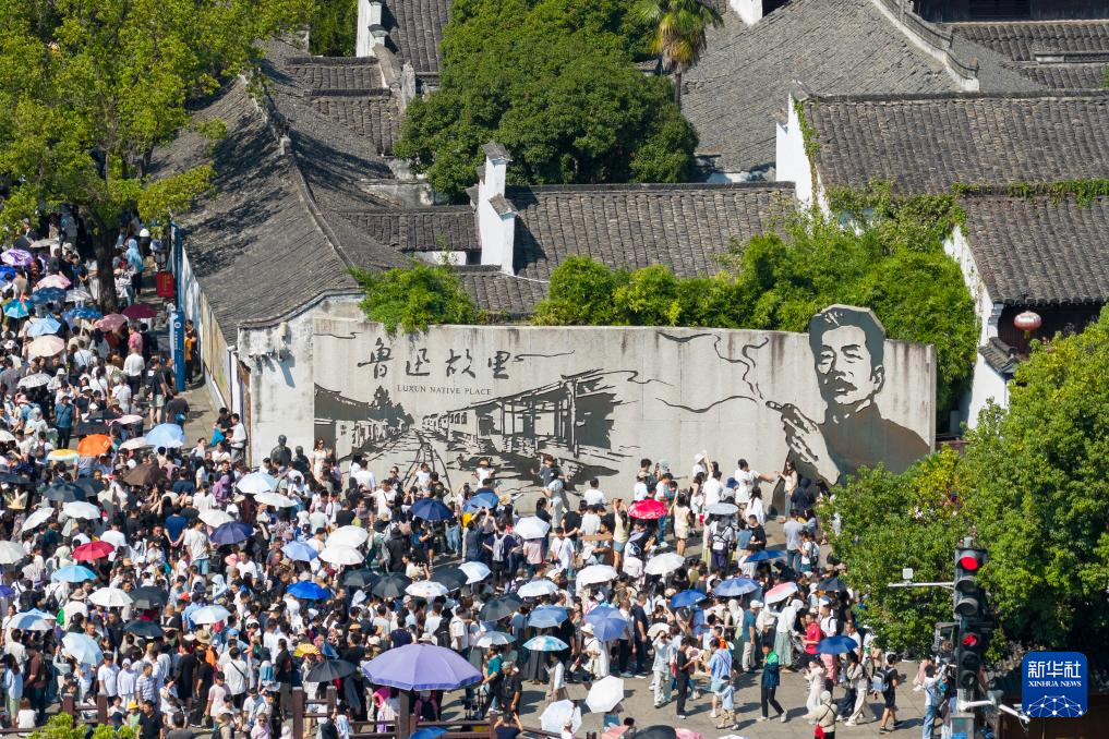 10月2日,游客在浙江省绍兴市鲁迅故里参观游玩(无人机照片)。