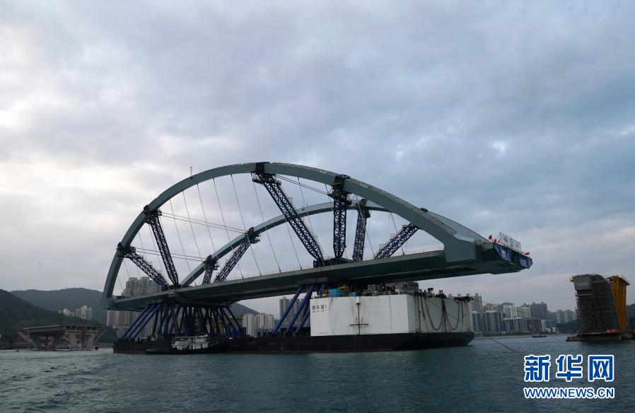 2月26日,將軍澳跨灣大橋主橋順利完成浮托安裝,浮托安裝總重達(dá)12000噸,總長(zhǎng)214米,創(chuàng)造國(guó)內(nèi)單體拱橋整體安裝的新紀(jì)錄。
