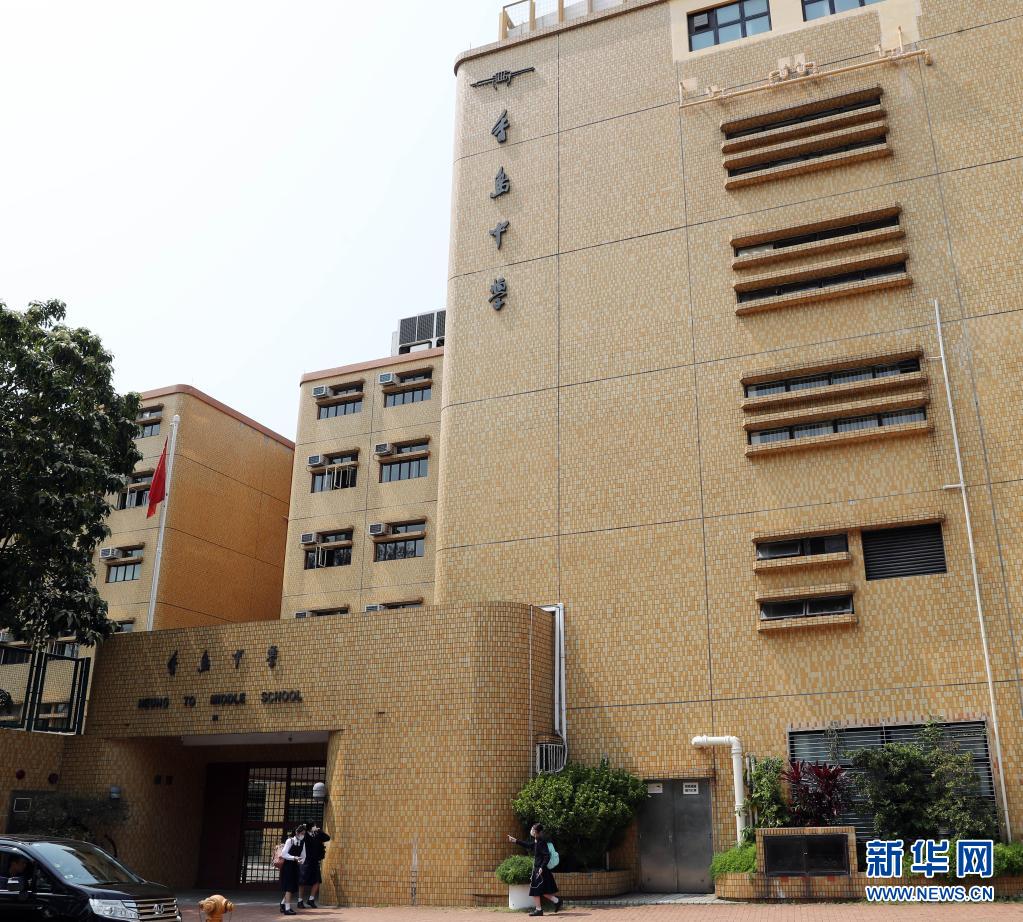 這是香港香島中學(xué)的校門口(3月16日攝)。新華社記者 李鋼 攝