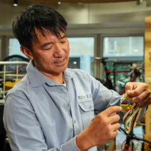 现在他的单车店已成为单车爱好者的聚集地。每当有年轻车手在彩虹战衣和奖牌前驻足,他总会借机鼓励:“这些奖牌证明,不管做任何事,只要愿意付出时间和精力,专注去做,就有成功的机会。”