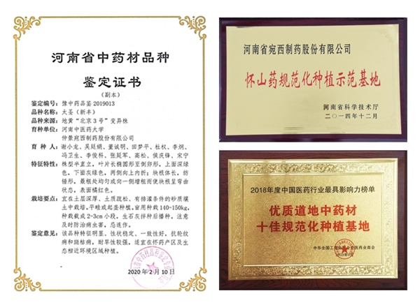 仲景宛西制藥是國內(nèi)首家提出“藥材好,藥才好”理念的企業(yè),有自建的中藥材種植基地,藥材地道,藥源清晰。是最早一批通過中藥材生產(chǎn)管理規(guī)范(GAP)認(rèn)證的企業(yè)之一,得到了政府部門、行業(yè)協(xié)會等社會各界廣泛認(rèn)可。其中懷山藥、懷地黃基地被授予“河南省規(guī)范化種植示范基地”、山茱萸基地“中國優(yōu)質(zhì)地道中藥材十佳規(guī)范化種植基地”。