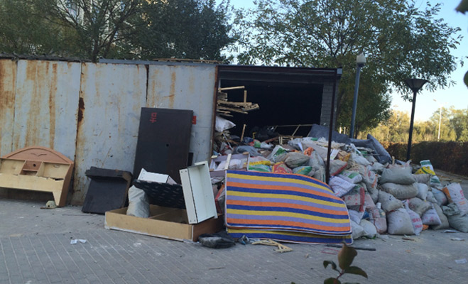 小區(qū)整體綠化率較高,記者也看到現(xiàn)場(chǎng)有保潔人員隨時(shí)在清掃。不過在小區(qū)的南部堆滿了各種裝修垃圾,有業(yè)主稱,“好多家裝修時(shí)就把垃圾扔這里,久而久之就多了,也沒人處理”。