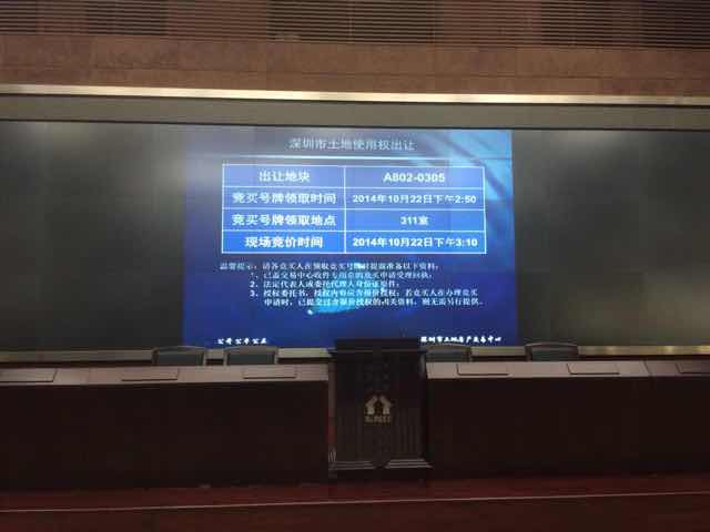 | 10月22日下午3點(diǎn),深圳今年首宗居住用地公開掛牌出讓。根據(jù)深圳市土地房產(chǎn)交易中心9月15日下午發(fā)布的公告顯示,將出讓的該宗居住用地宗地號(hào)為A802-0305,位于龍華新區(qū)民治辦事處轄區(qū),掛牌起始價(jià)252500萬(wàn)元(25.25億元),土地用途為居住用地,土地面積46646.77平方米,建筑面積186500平方米,土地使用年限70年。記者現(xiàn)場(chǎng)了解,共有7家競(jìng)買人參與競(jìng)拍,首輪報(bào)價(jià),拿3號(hào)牌的競(jìng)買人應(yīng)價(jià)。 |