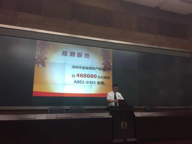 | 16:30分左右,3號(hào)牌的金駿房地產(chǎn)公司,最終以46億8千萬(wàn)的價(jià)格拿下該地塊,折合 樓面地價(jià)25094元每平方米。刷新深圳住宅用地的總價(jià)和單價(jià)地王。 |